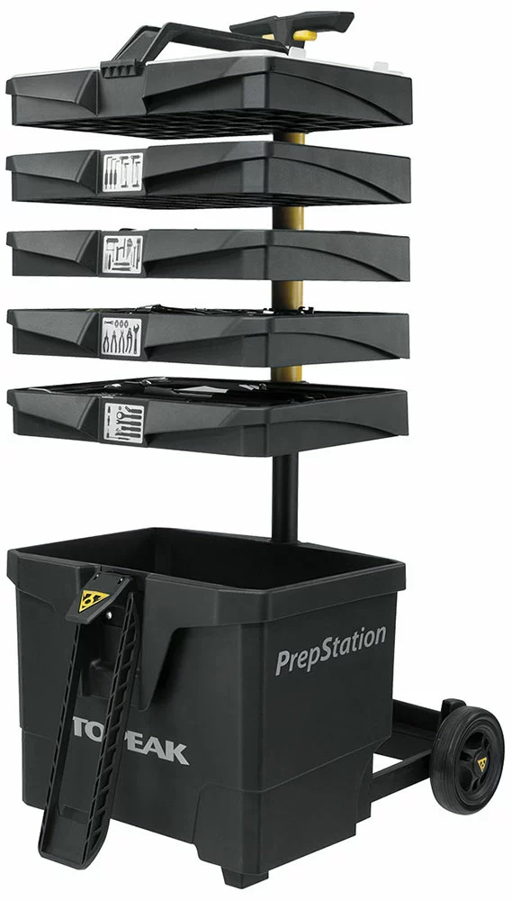 La PrepStation de Topek est un chariot à outils facile à manier avec des roulettes de 5″ et sept compartiments. Les roulettes peuvent être facilement étendues pour augmenter la stabilité. Une simple pression sur un bouton permet d’ouvrir le système pour séparer les plateaux d’outils.