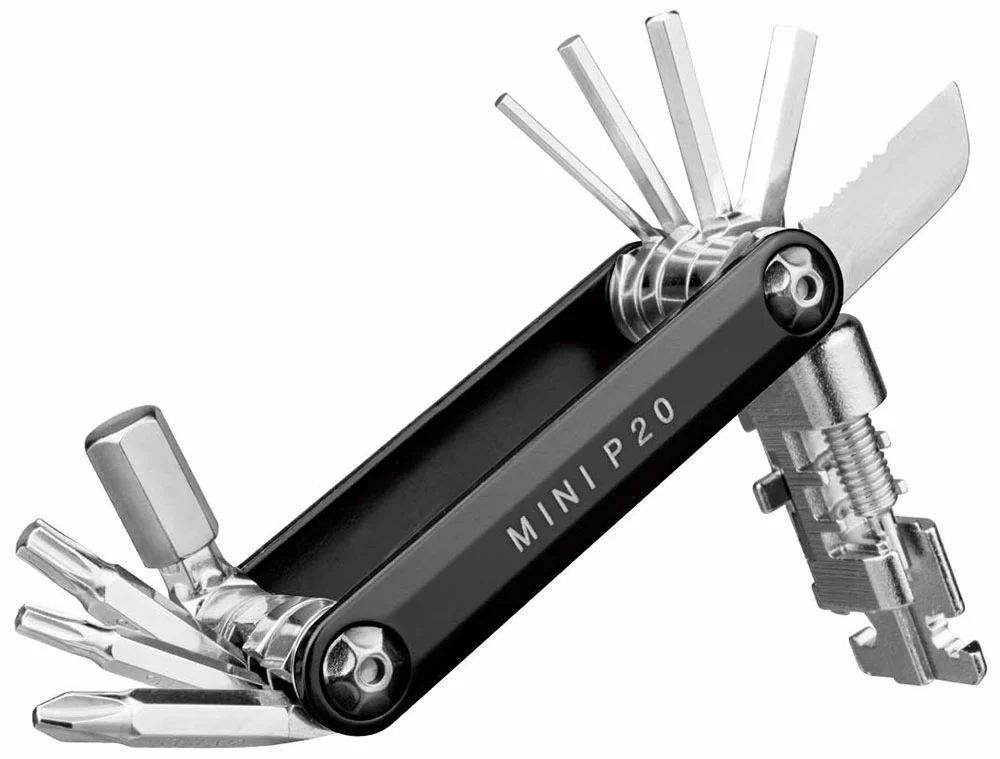 Mini-outil de précision de 20 pièces de Topeak dans une forme mince en aluminium forgé. L’outil de rivetage de chaîne intégré et convivial, doté d’un outil de verrouillage de chaîne unique, est repliable de manière compacte et assure un profil optimisé. Excellent pour les longues randonnées avec le vélo de route ou le vélo de montagne.