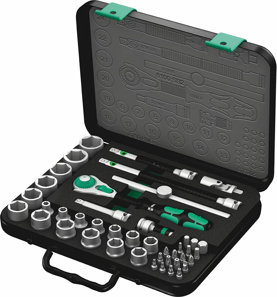 - 1 x Wera 8100 SB 2 Jeu cliquet Zyklop Speed, à carré 3/8″, métrique, 43 pièces